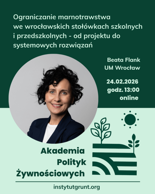 W skali pojedynczej gminy dane te mogą wydawać się abstrakcyjne i trudne do przełożenia na konkretne działania. A co, jeśli zejdziemy na poziom szkoły? Badania prowadzone w polskich stołówkach pokazują, że do kosza trafia 40–50% przygotowywanych posiłków. To problem o ogromnej skali, który wciąż nie doczekał się właściwych rozwiązań systemowych. Jednocześnie istnieją już sprawdzone narzędzia i dobre praktyki ograniczania marnowania żywności wypracowane dzięki współpracy organizacji społecznych, intendentów, dyrektorów szkół oraz samorządów. O części z nich opowie podczas spotkania Beata Flank z Urzędu Miejskiego Wrocławia.