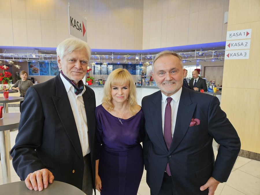Natomiast największe owacje zebranych otrzymał obecny wśród gości dr Wojciech Szczurek, prezydent miasta w latach 1998-2024 (na zdjęciu poniżej wraz z żoną Barbarą i byłym przewodniczącym Rady Miasta, Stanisławem Szwabskim, który był delegatem Gdyni do Związku Miast Polskich i naszym przedstawicielem w Komitecie Regionów UE).